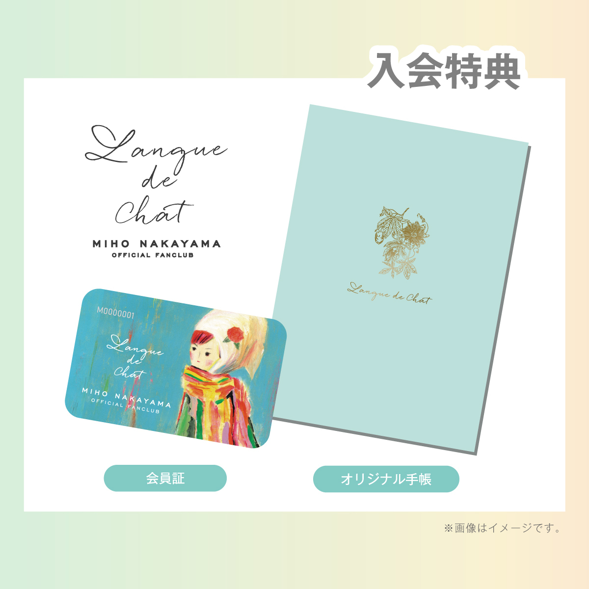 中山美穂 Official Fanclub「Langue de Chat (ラング・ド・シャ) 」にご入会いただいた方には、下記入会特典をプレゼントいたします!