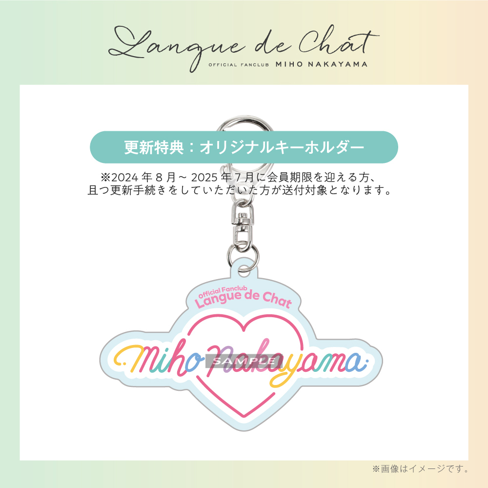 中山美穂 Official Fanclub「Langue de Chat」の更新特典についてのご案内です。
