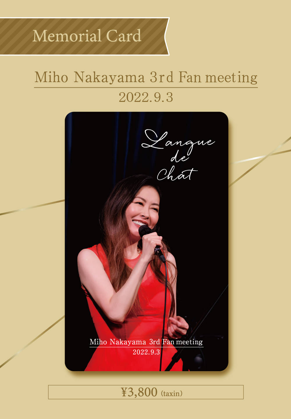 9月3日(土)「Miho Nakayama 3rd Fan meeting 〜Langue de Chat〜」の映像を収録したメモリアルカード(映像視聴カード)の販売が決定しました!
