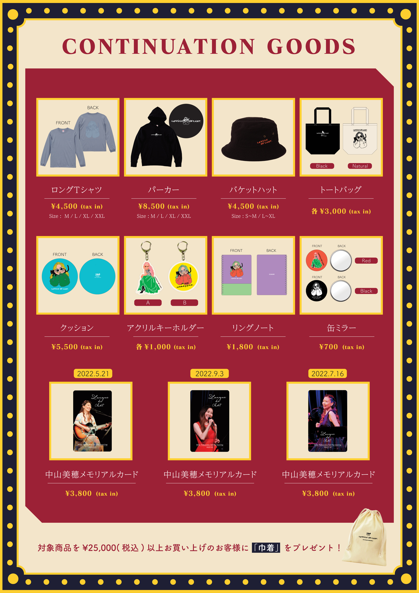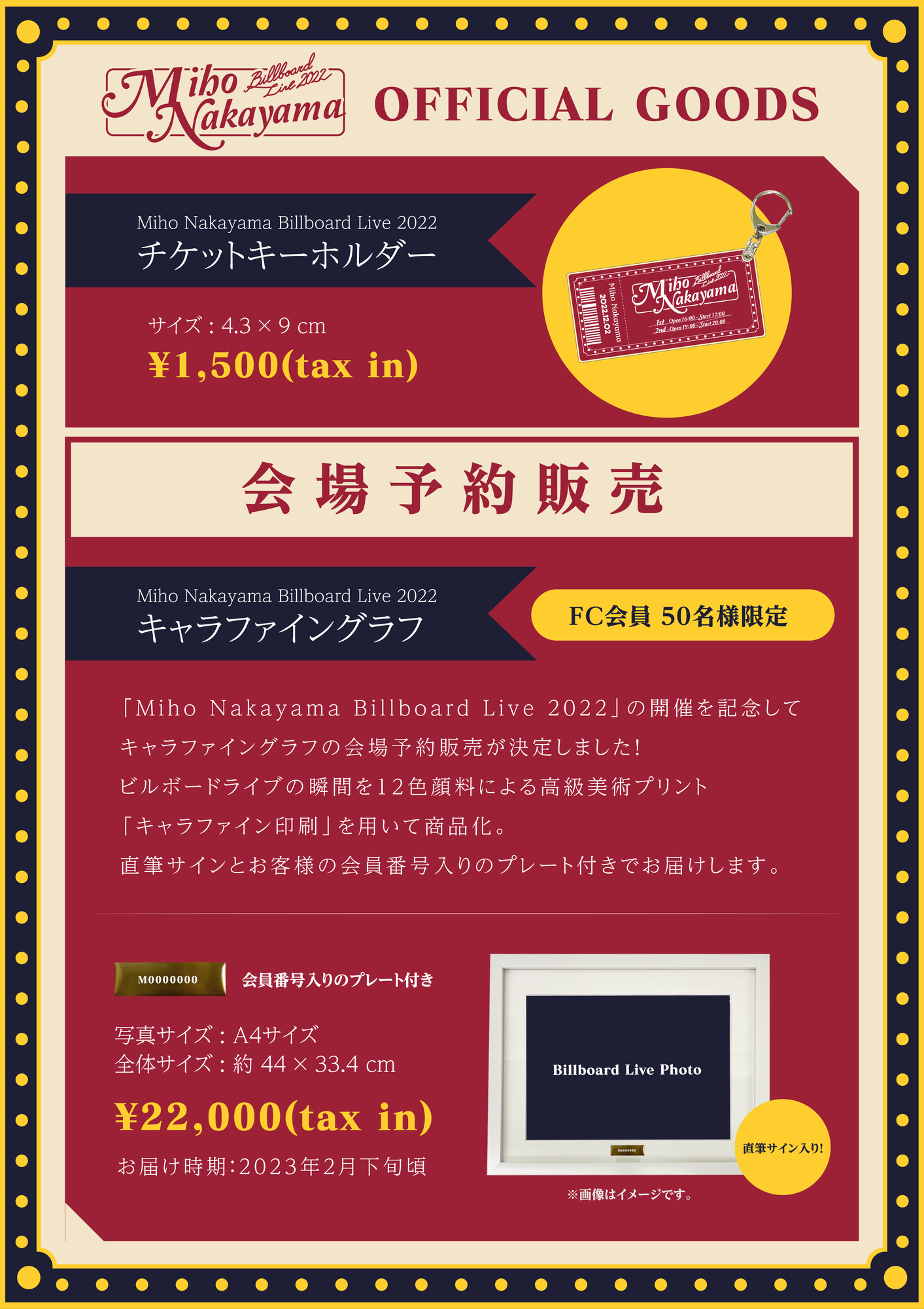 12月2日(金) 「Miho Nakayama Billboard Live 2022」会場でのグッズ販売情報です。