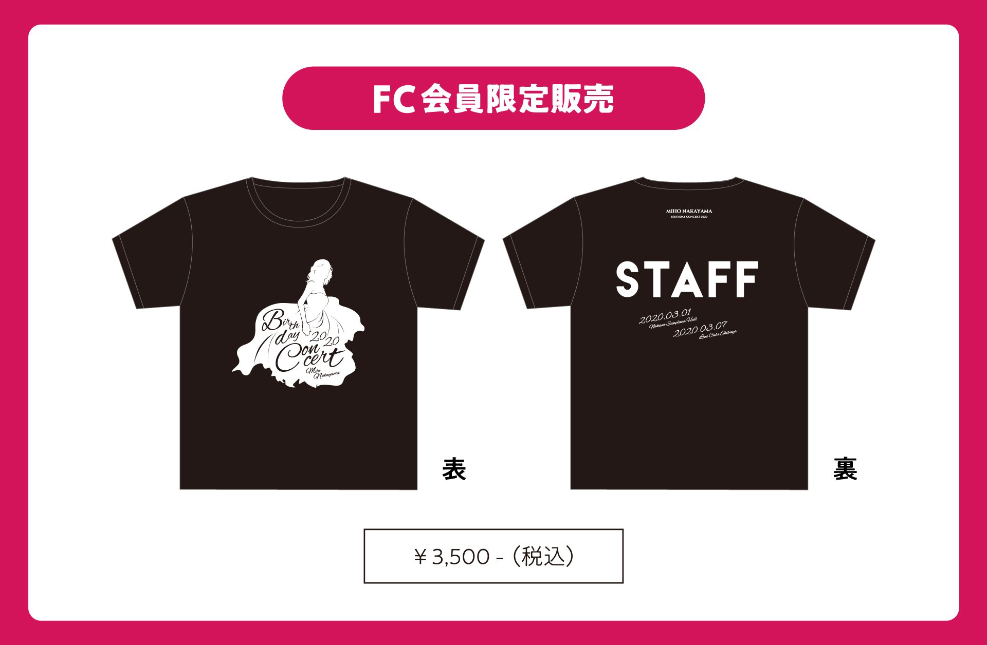 ツアーの開催を記念して、2020年に開催予定だった「MIHO NAKAYAMA BIRTHDAY CONCERT」のスタッフTシャツをFC会員限定で販売いたします!