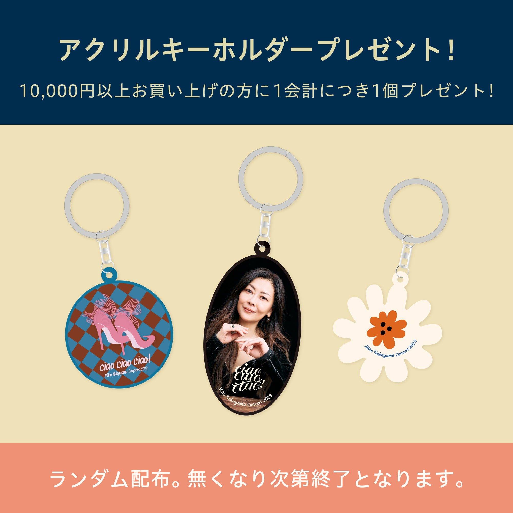 ciao ciao ciao! グッズを10,000円(税込)以上お買い上げの方に、オリジナルのアクリルキーホルダーを1会計につき1個プレゼント!
